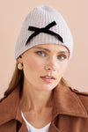 Yumi Oatmeal Bow Knitted Beanie Hat