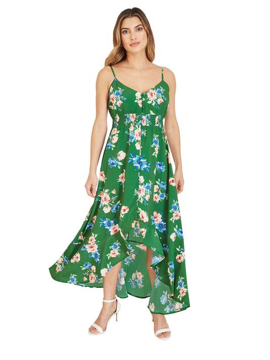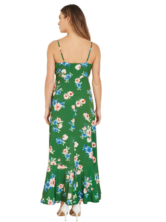 Mela Green Floral High Low Frill Midi Dress