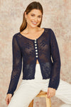 Yumi Navy Flower Crochet Button Up Cardigan