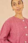 Yumi Pink Relaxed Fit Cable Cardigan