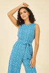 Yumi Teal Ditsy Daisy Sleeveless Culotte Jumpsuit