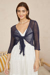 Yumi Navy Popcorn Yarn Tie Front Bolero
