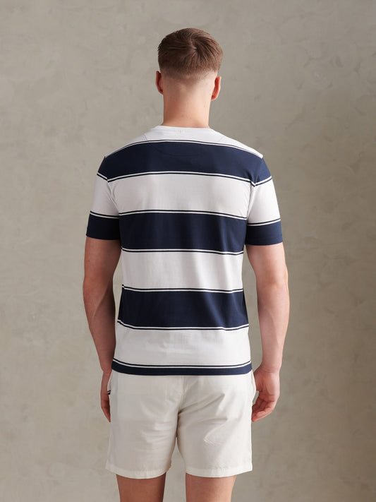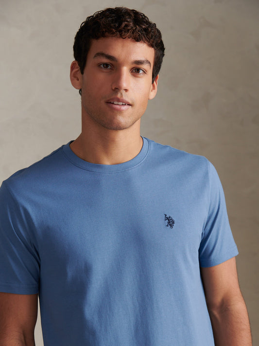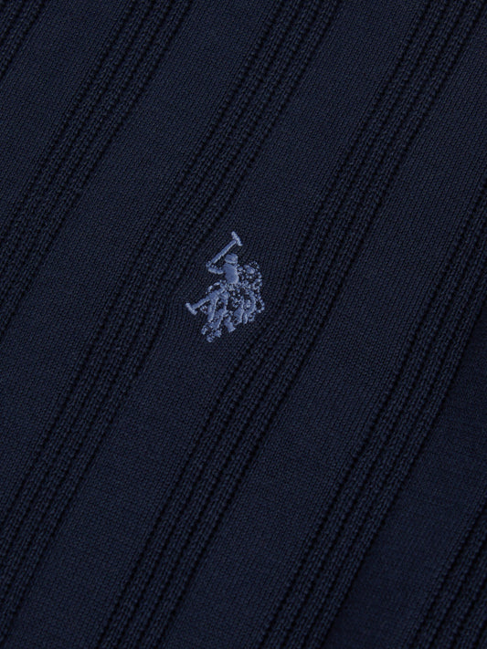 Mens Cotton Vertical Texture Knit T-Shirt Sea Spray