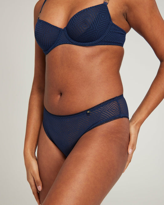 The Sheer Deco High Leg Brief - Navy