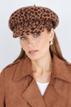 Yumi Brown Leopard Print Baker Boy Hat