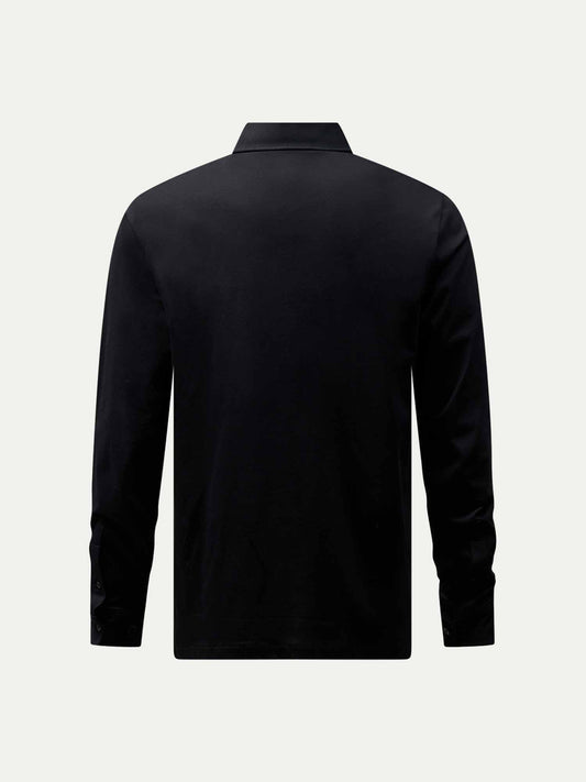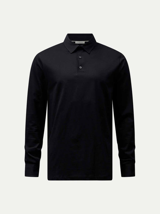 Mercerised Cotton Long Sleeve Polo Shirt Black