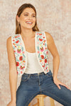 Yumi White Folk Embroidered Cotton Waist Coat
