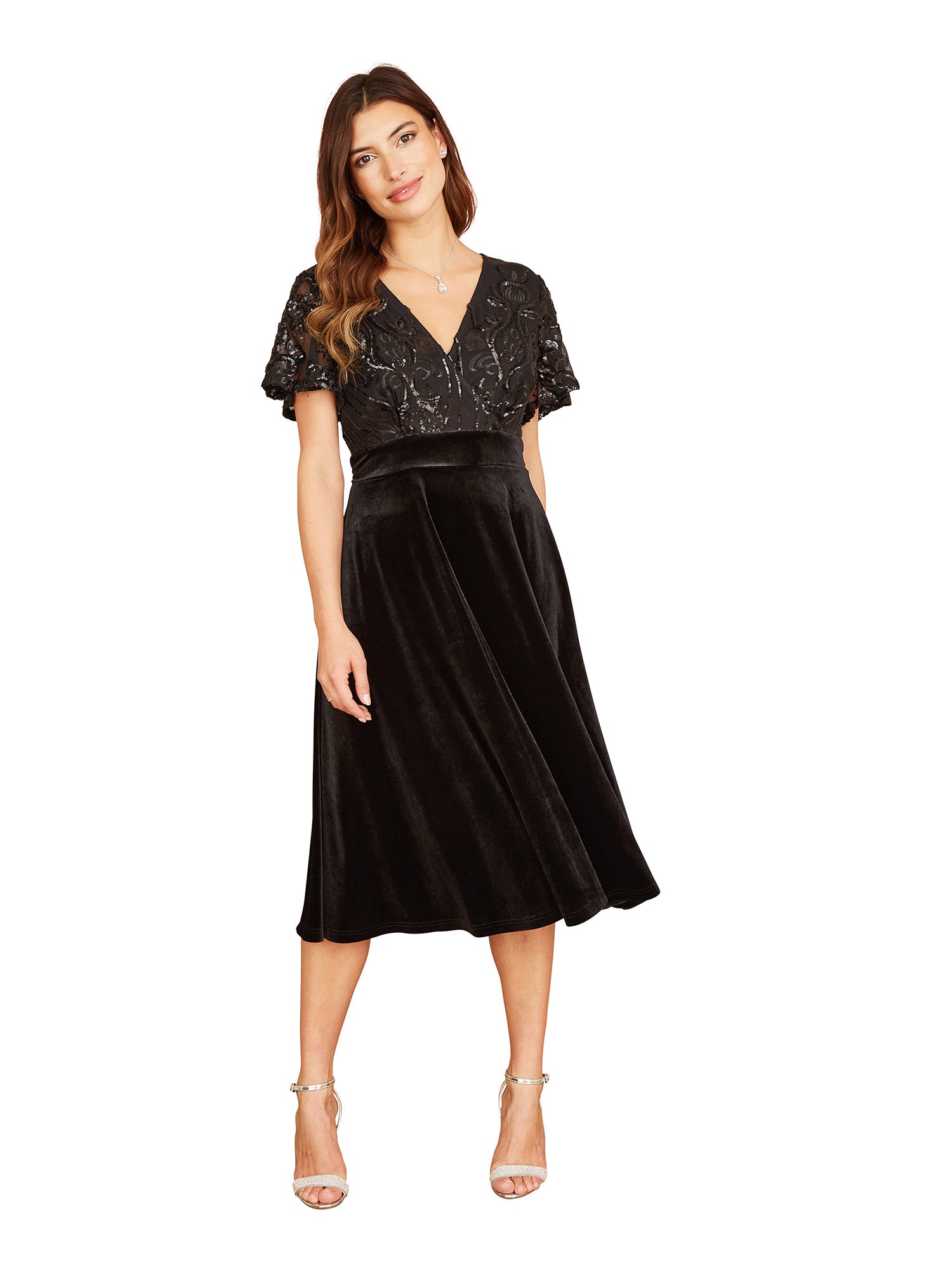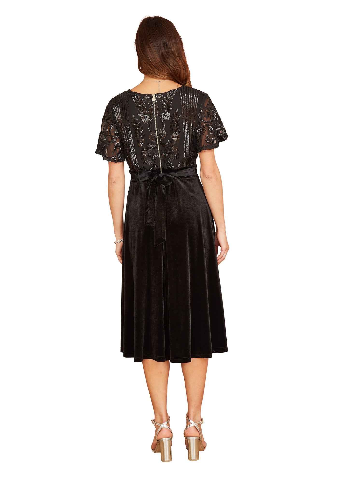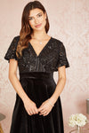 Yumi Black Embellished Velvet Wrap Skater Midi Dress