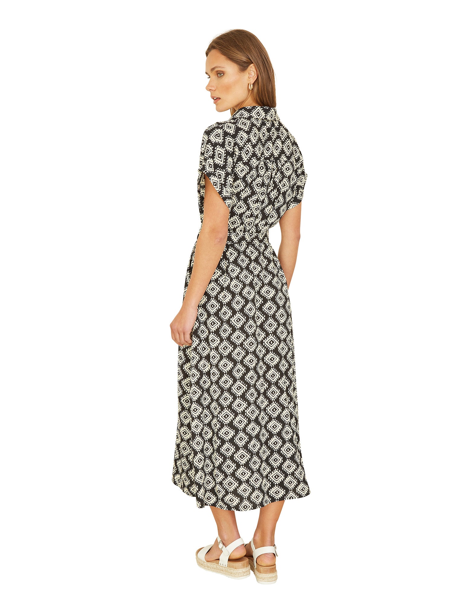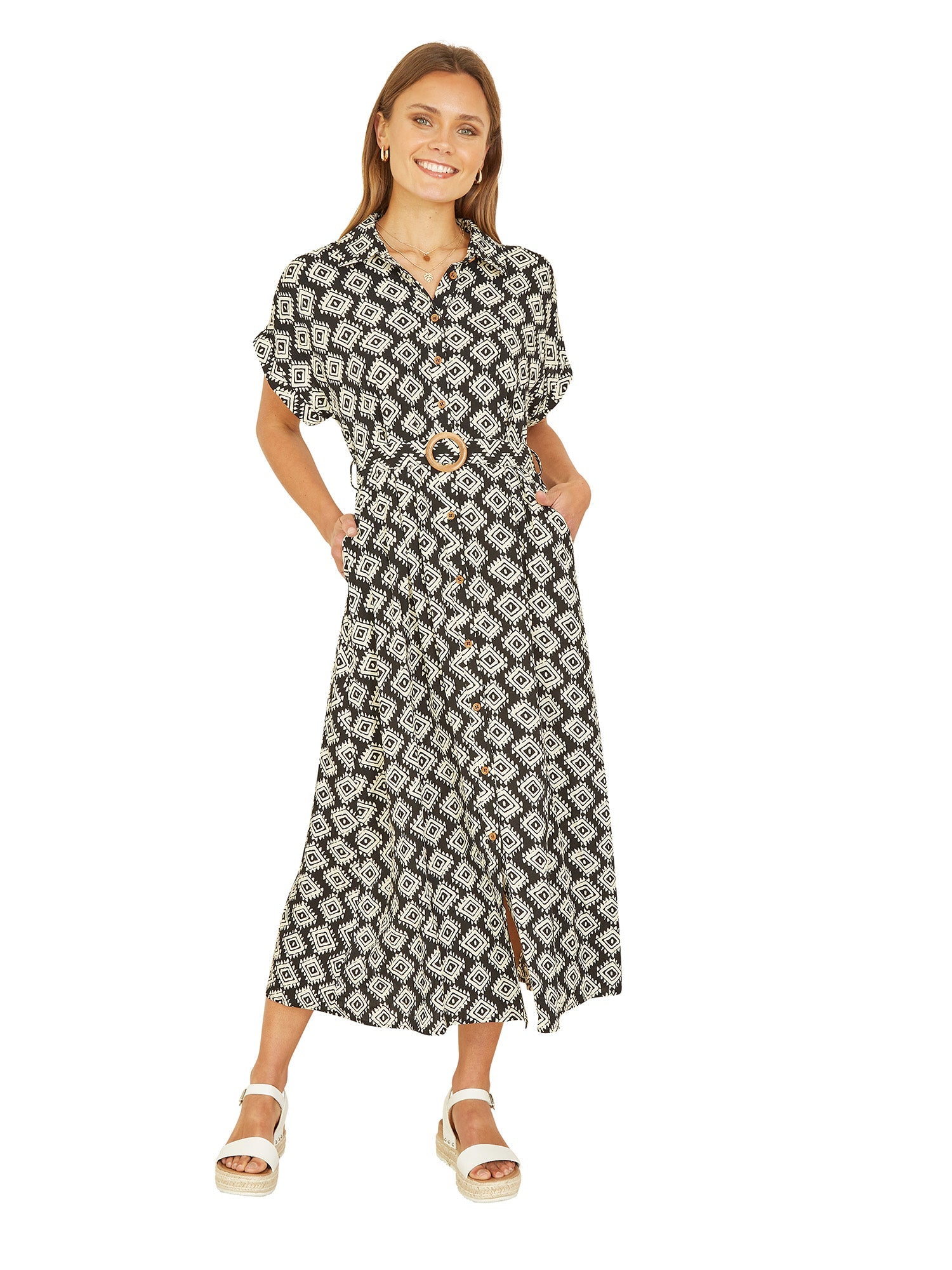Yumi Black Viscose Midi Shirt Dress With Matching Belt