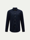 Flannel Herringbone Spread Collar Shirt in Dark Sapphire Navy