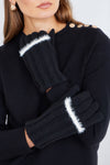 Yumi Black Gloves With Eyelash Knit Trim