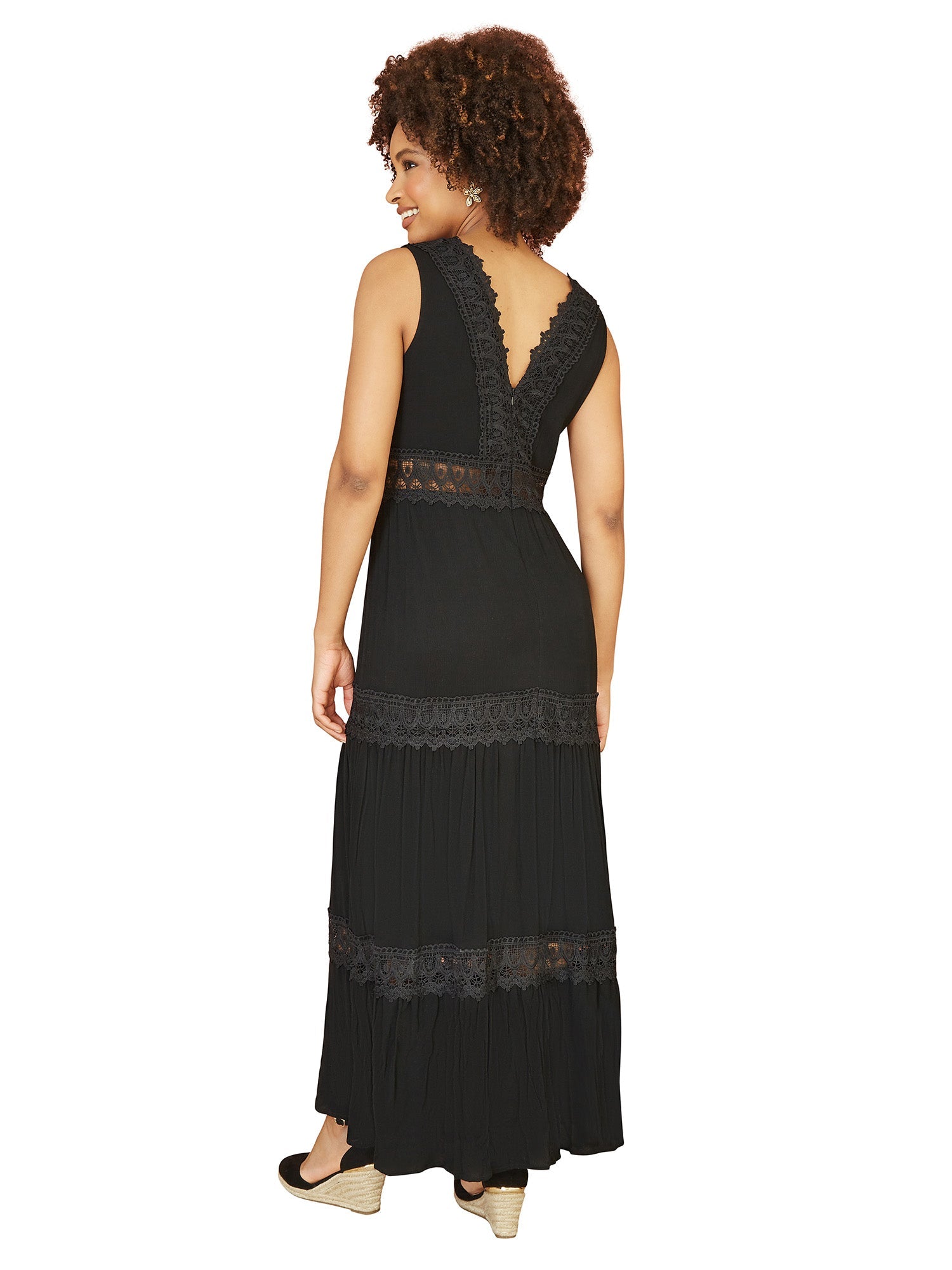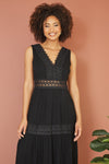 Yumi Black Lace Trim Cotton Midi Sun Dress
