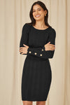 Yumi Black Shimmer Fitted Midi Dress With Button