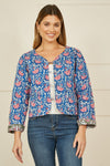 Yumi Blue Floral Reversible Cotton Quilted Jacket