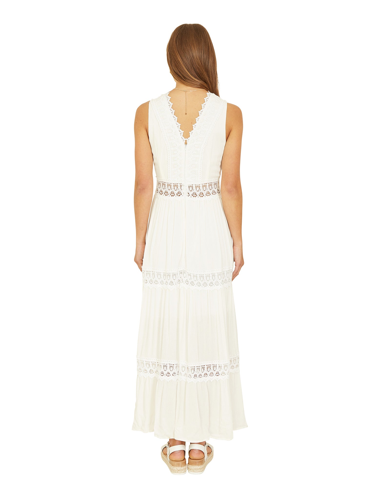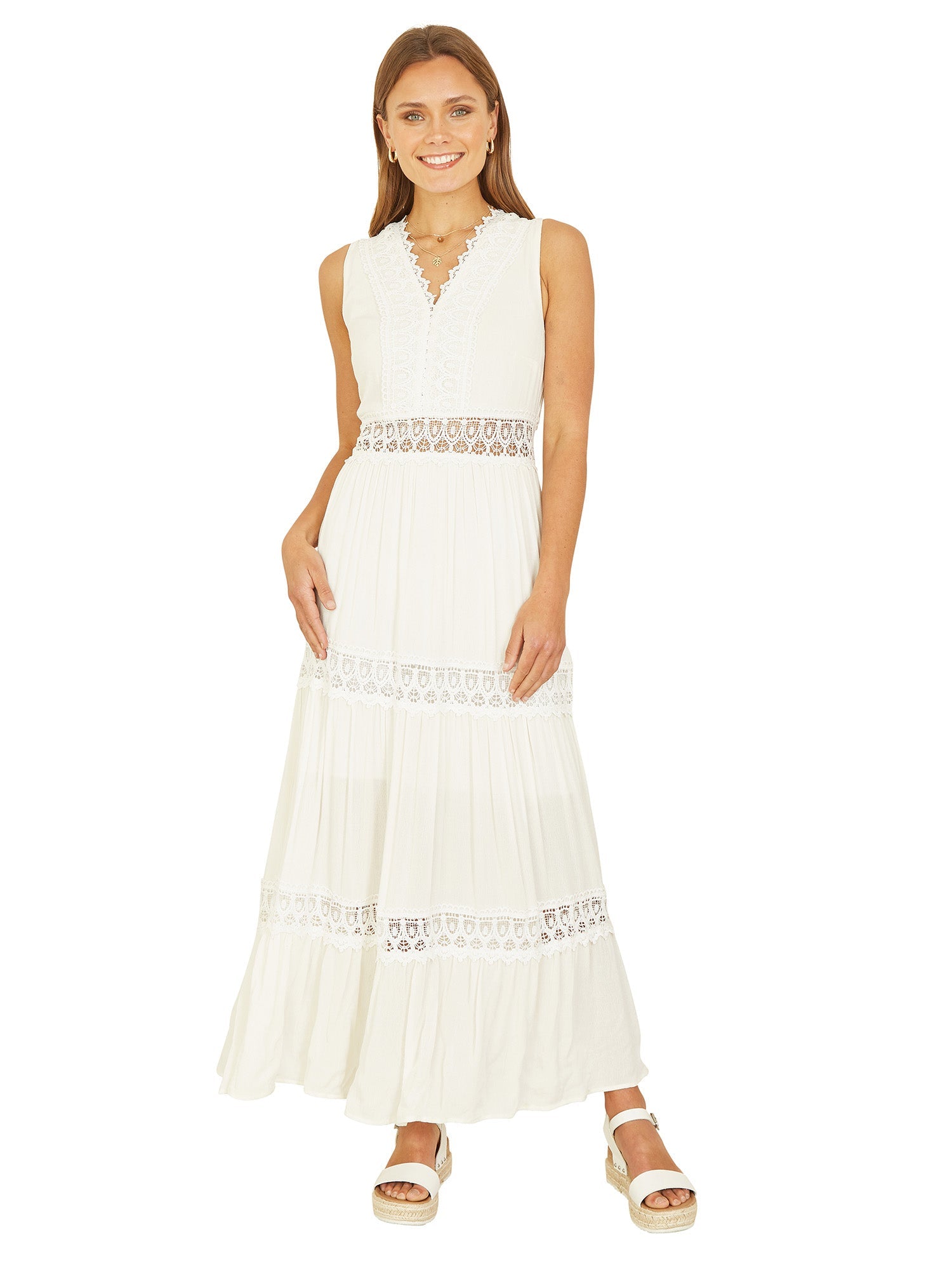 Yumi White Lace Trim Cotton Midi Sun Dress