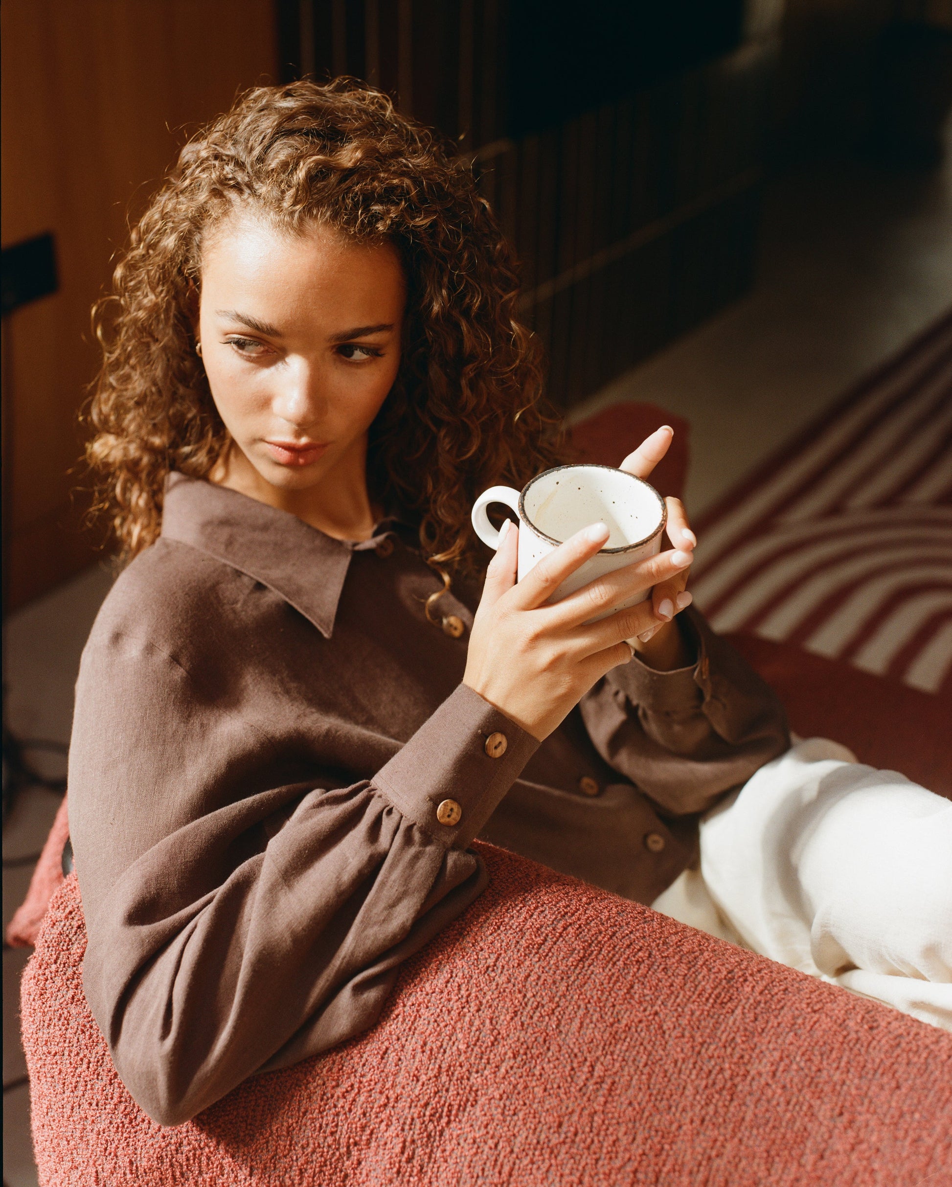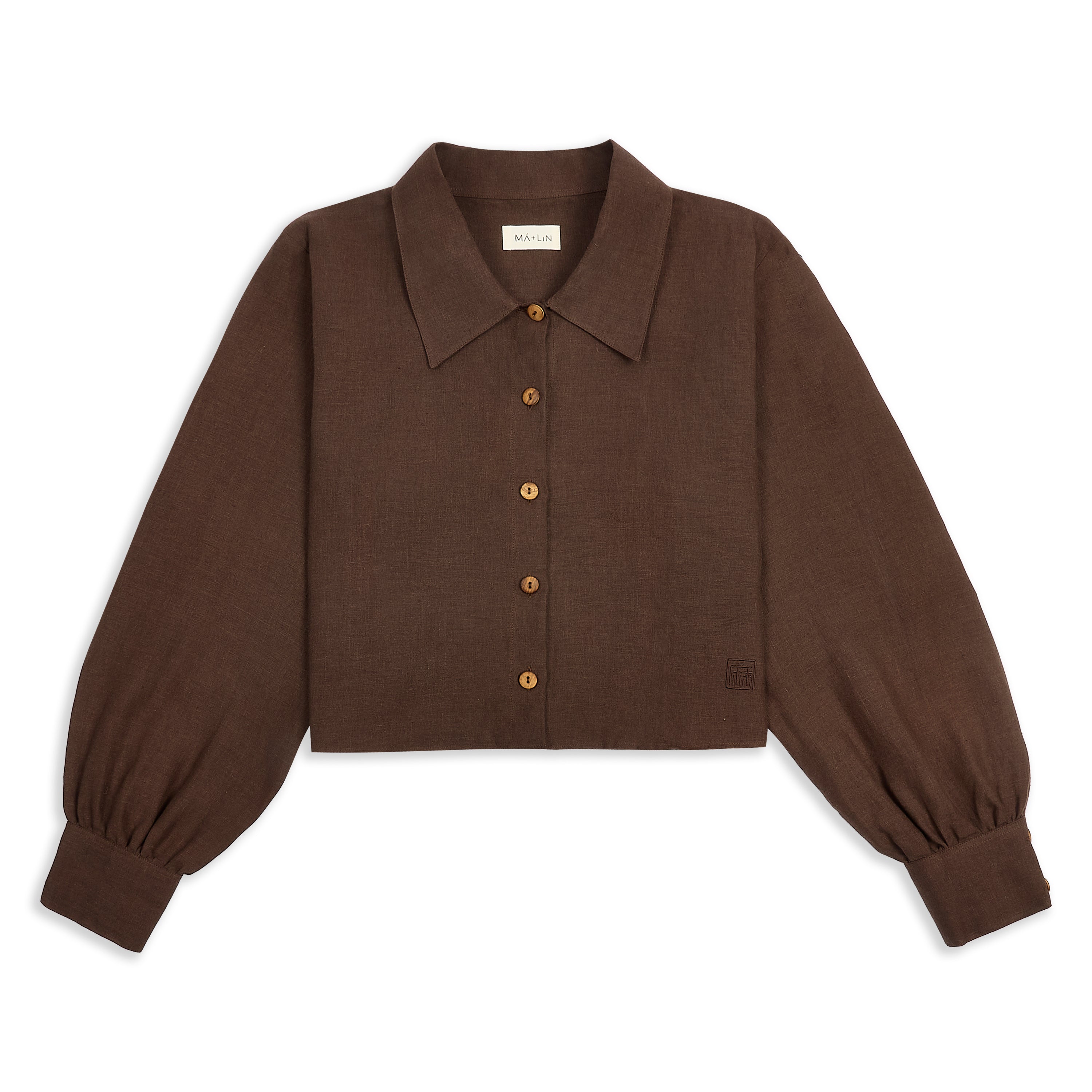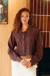 Freya Linen Cropped Blouse - Chocolate