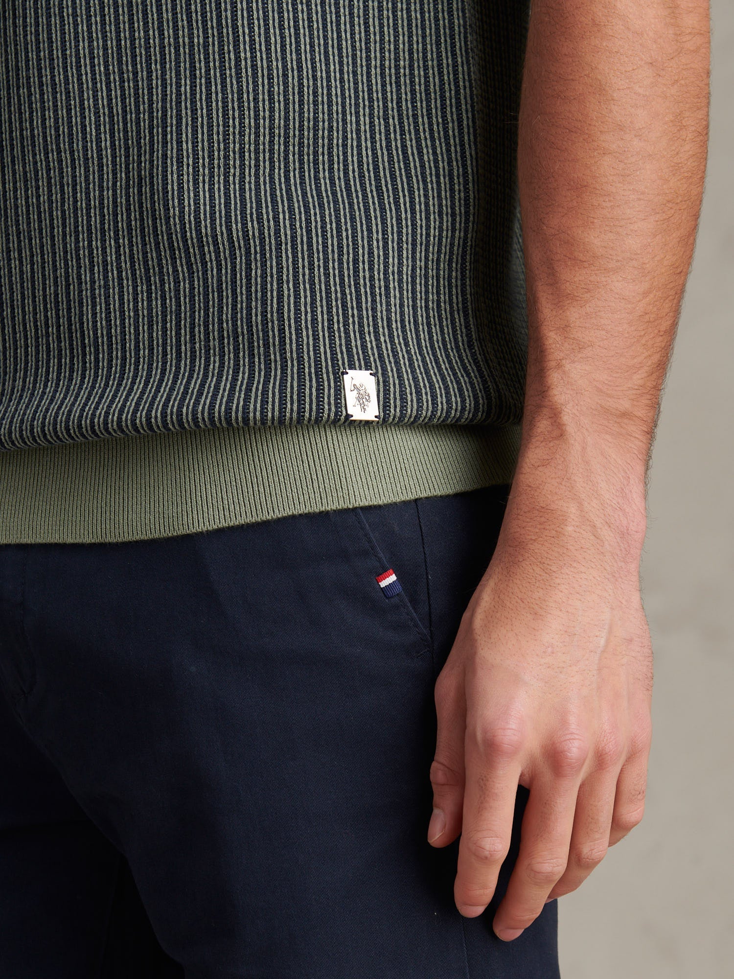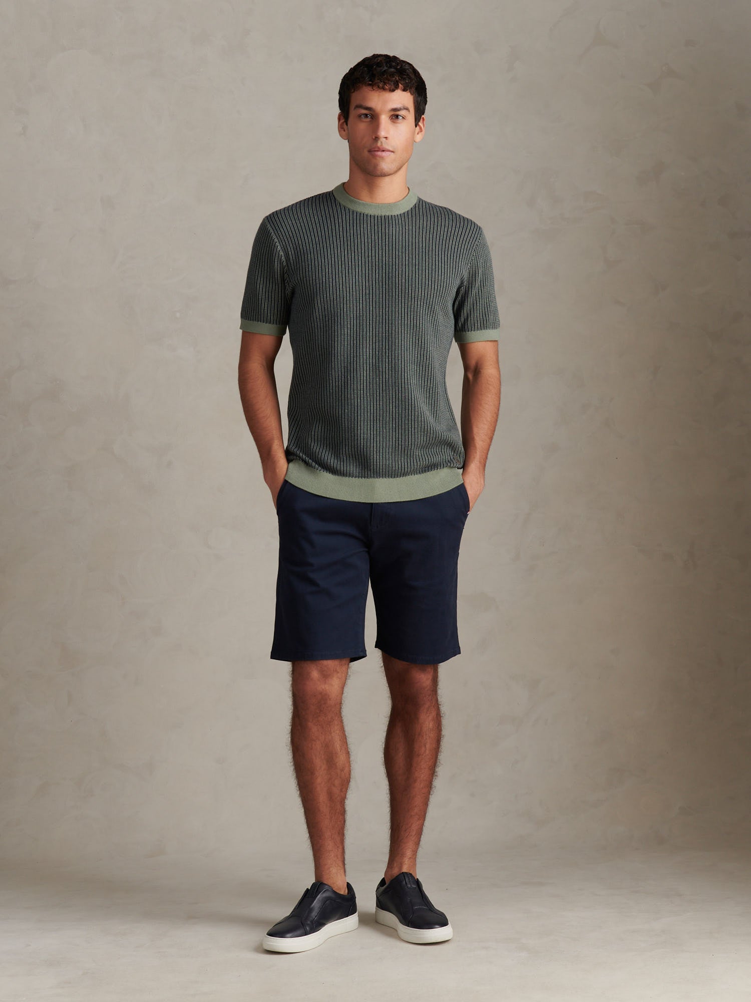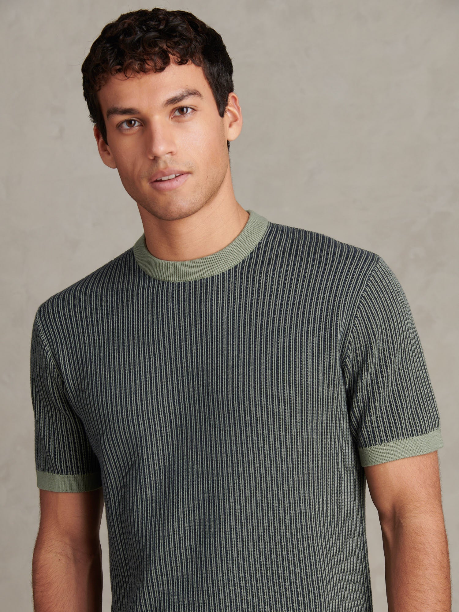 Mens Cotton Vertical Texture Knit T-Shirt Sea Spray