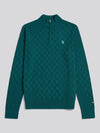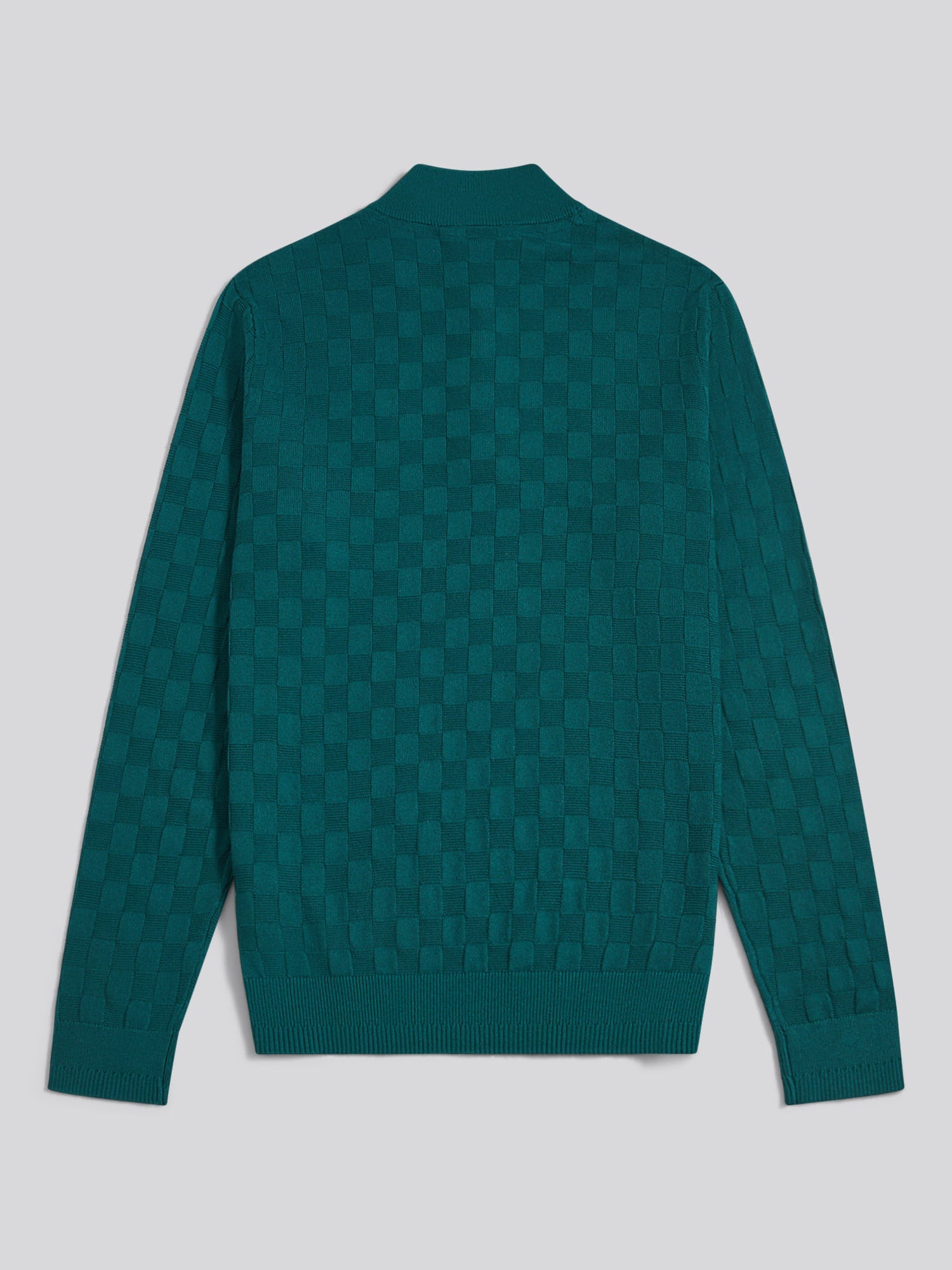 Mens Large Check Knit Quarter Zip Funnel Jumper Mediterranea