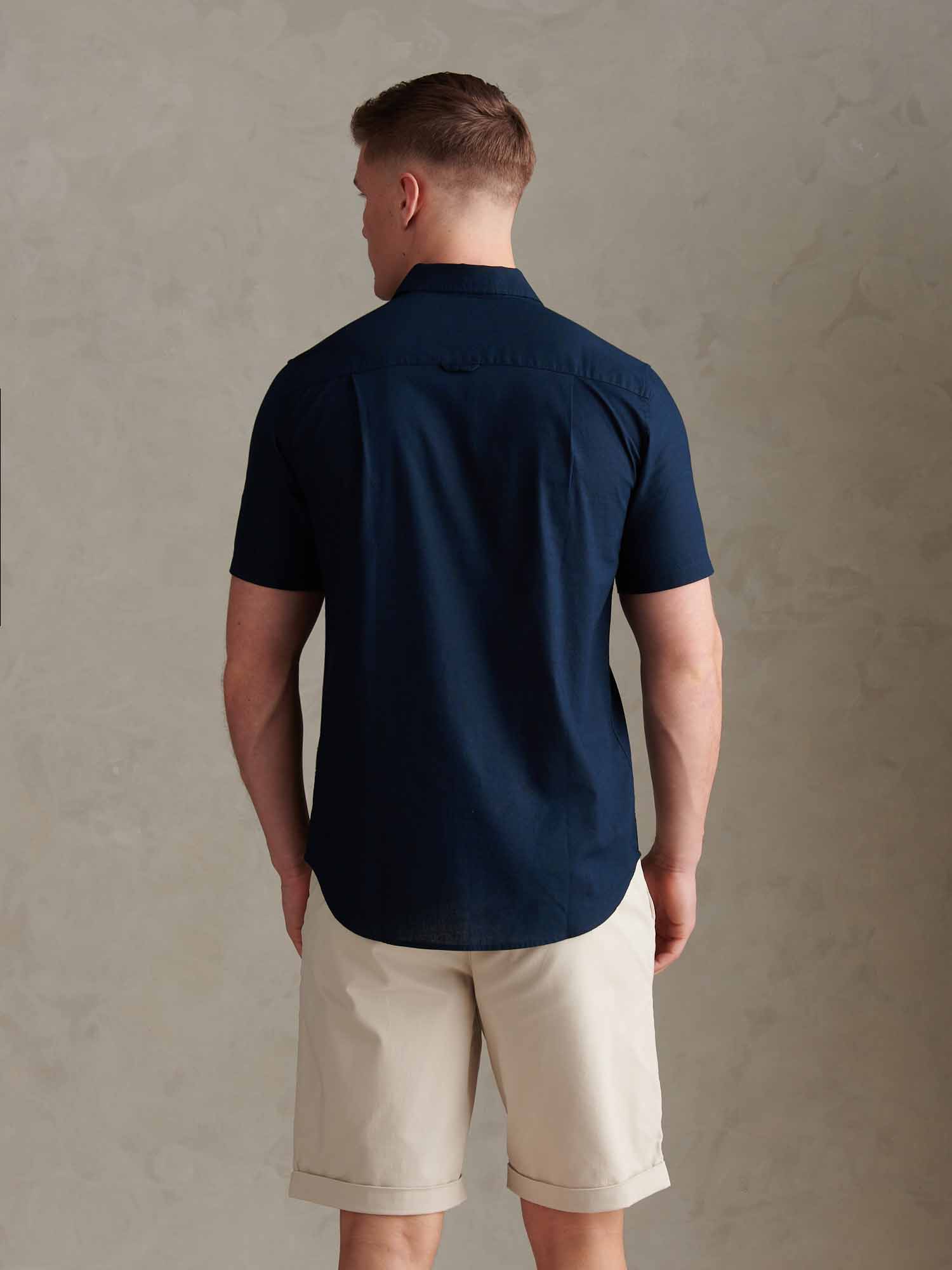 Mens Linen Blend Short Sleeve Shirt Dark Sapphire Navy / Moonlight Blue DHM