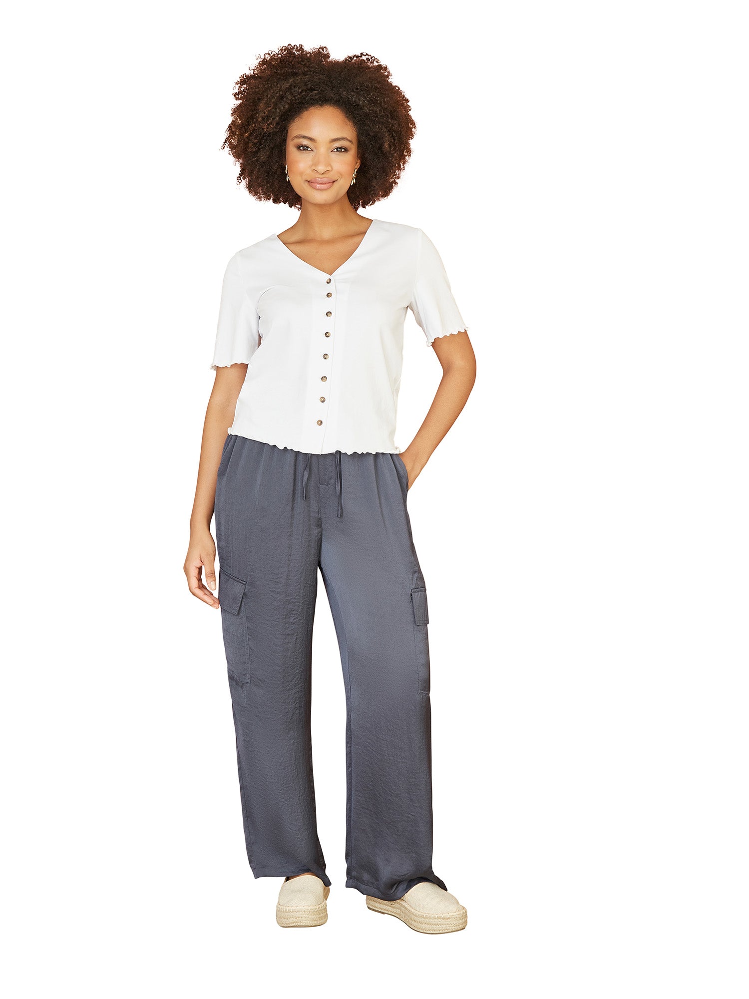Yumi White Cotton Button Detail T-Shirt