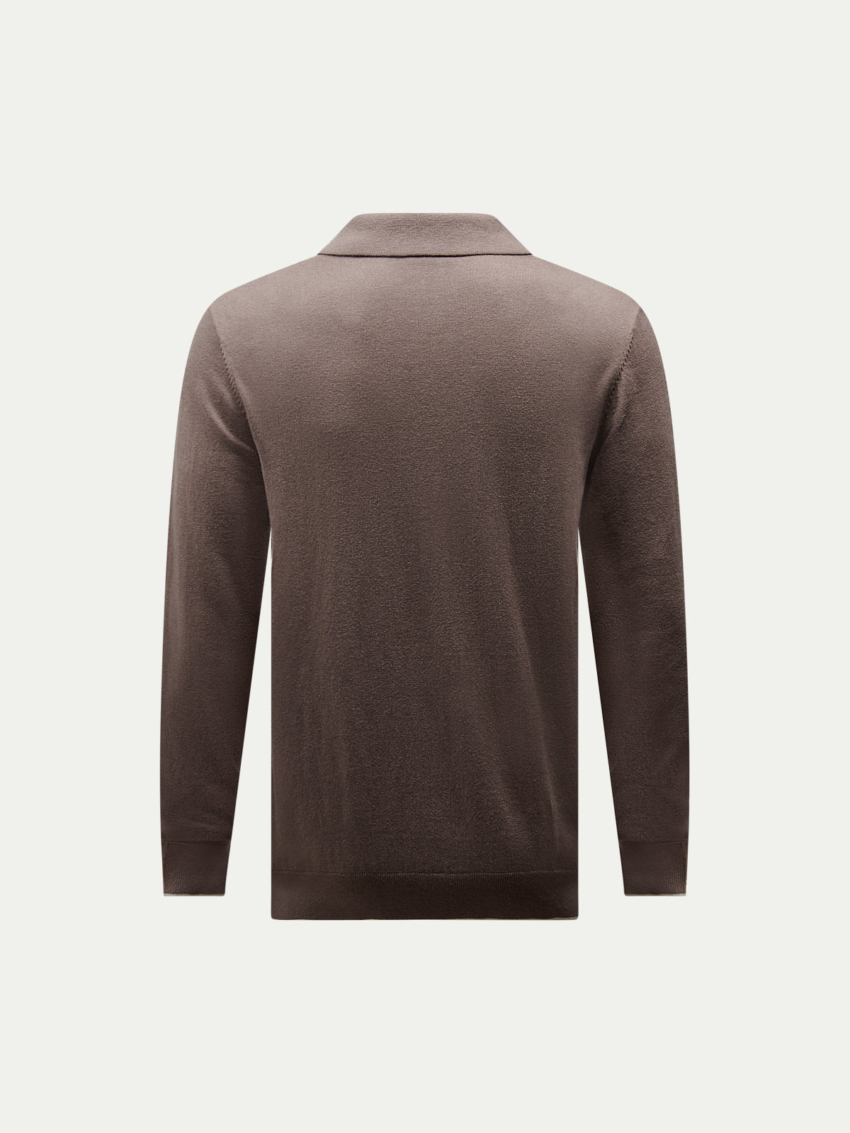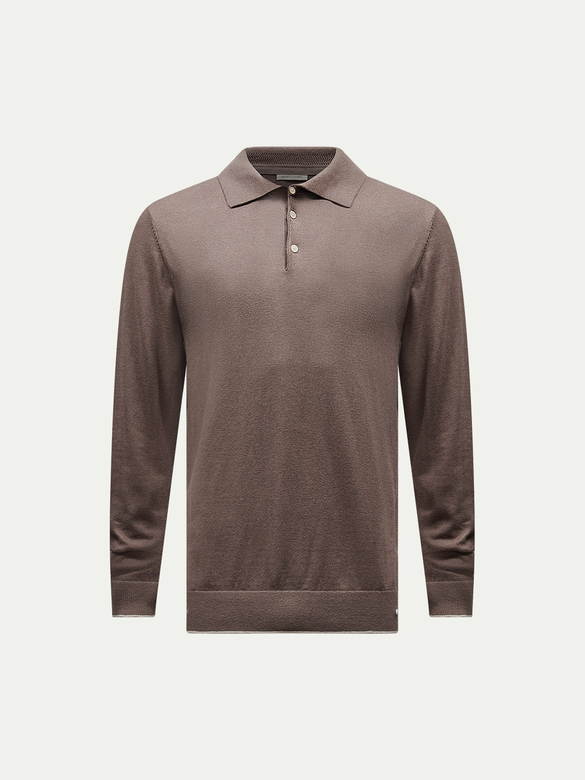Jersey Knit Long Sleeve Polo Shirt in Iron