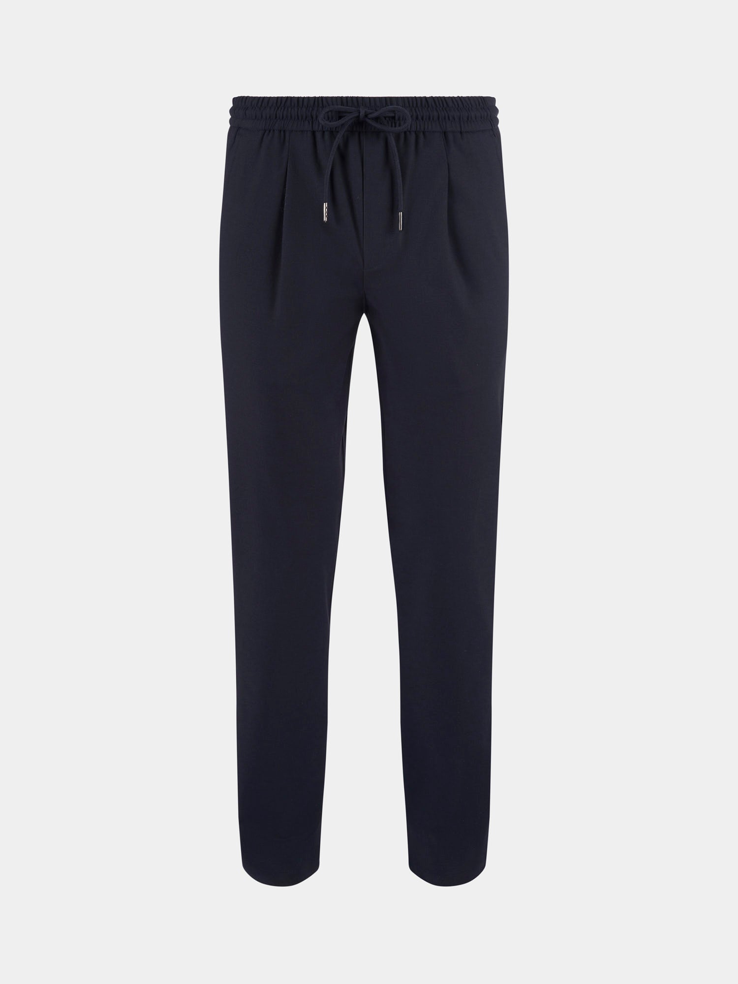 Single-Pleat Drawstring Travel Trousers in Navy Blue