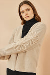 Yumi Beige Edge to Edge Cardigan With Flower Detail Sleeves