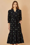 Yumi Black Flower Embroidery Midi Cord Dress