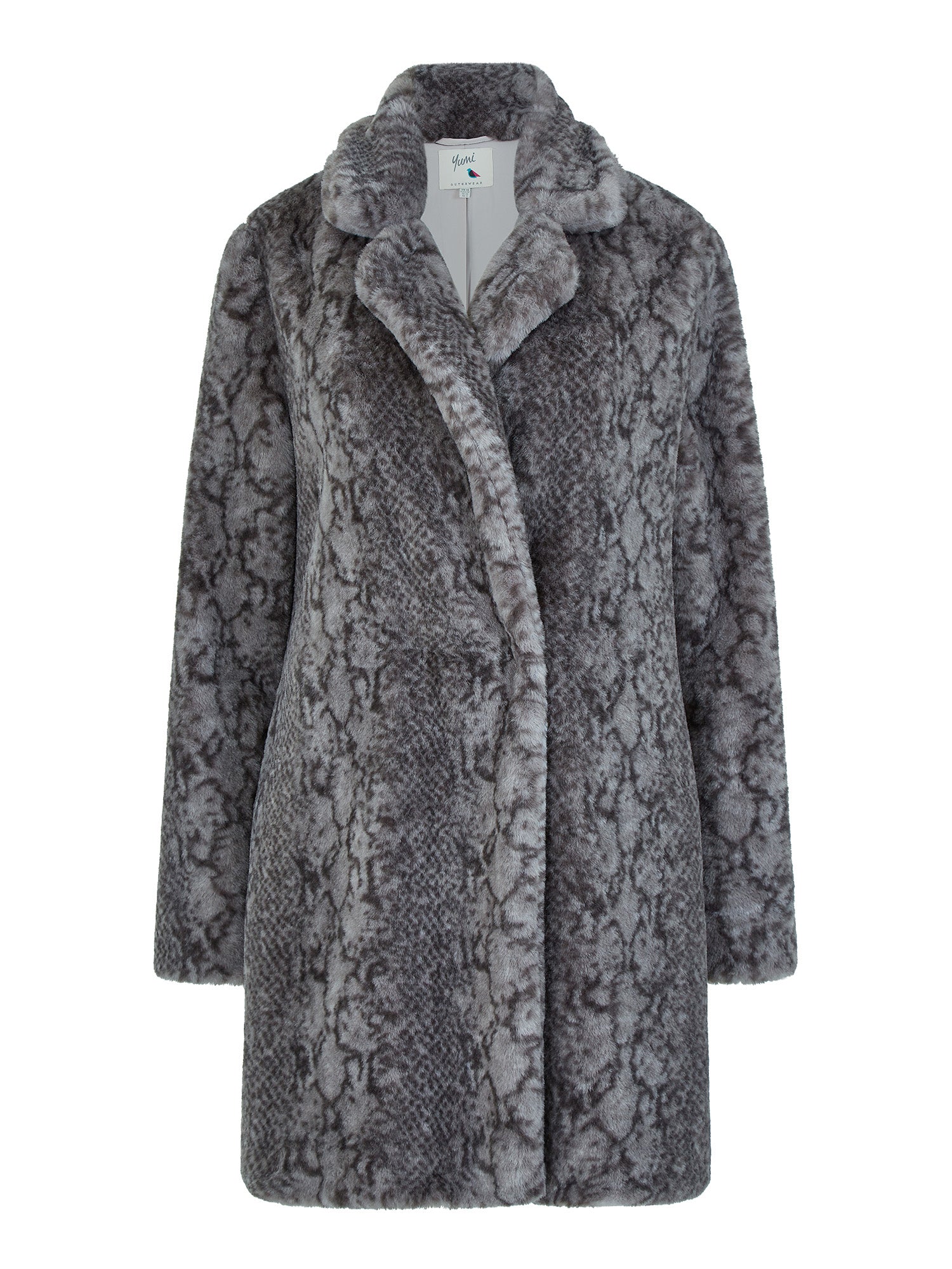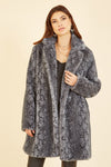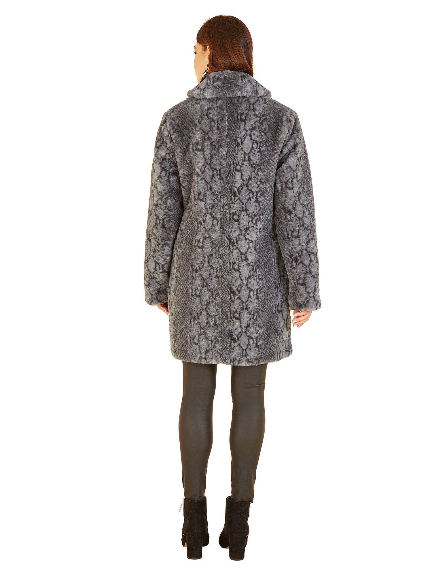 Yumi Grey Snakeskin Print Faux Fur Coat