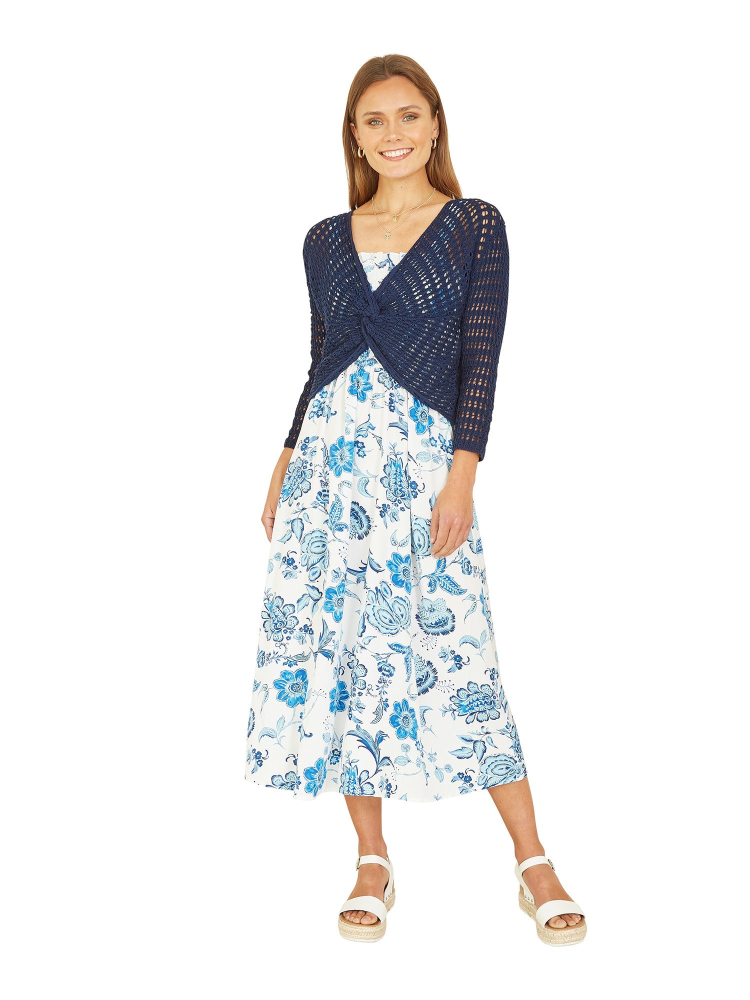 Yumi Navy Cotton Crochet Twisted Bolero Top