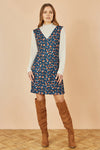 Yumi Navy Fox Long Sleeve Layered Tunic Dress With Front Pocket