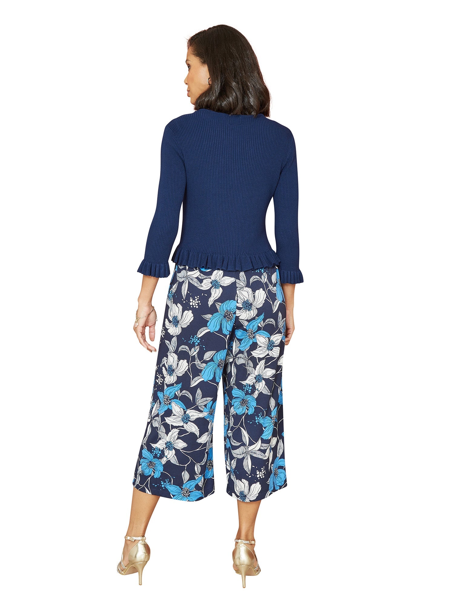 Yumi Navy Tie Up Ribbed Cardigan With Frill Hem