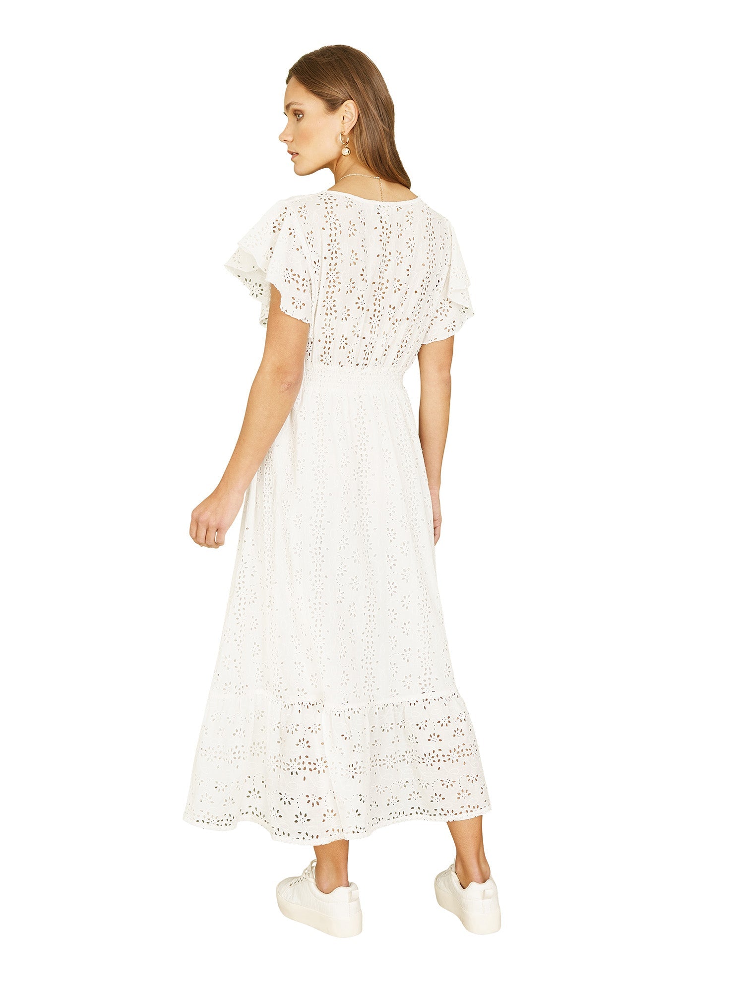 Yumi White Cotton Broderie Anglaise Wrap Midi Dress